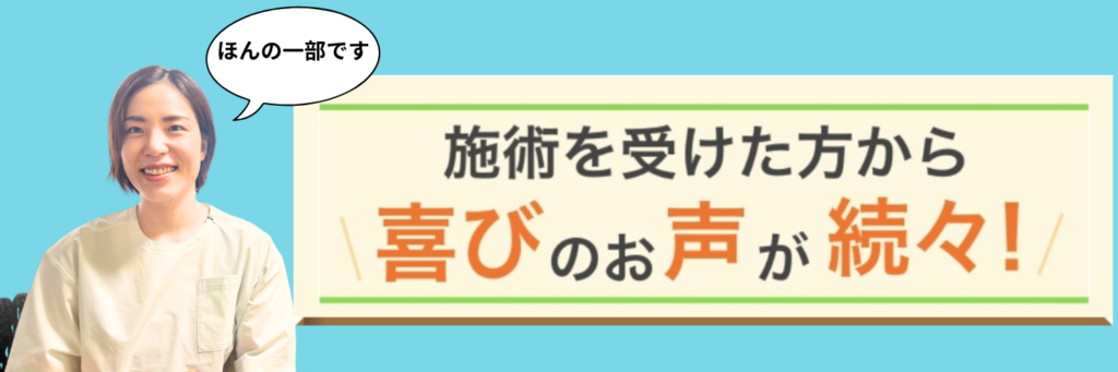 先生は施術以外でも、普段の生活についてのアドバイスやセルフケアなども教えていただけるので、すごく有難いです。